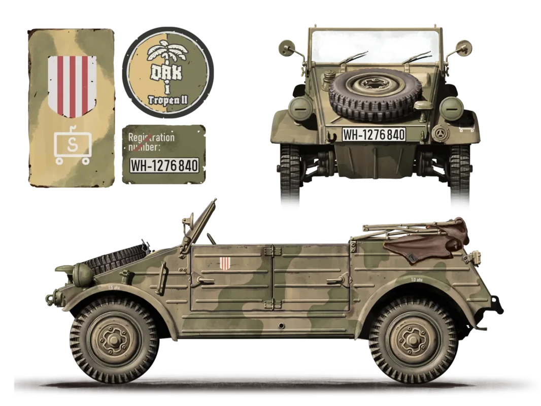 VW Kübelwagen Type 82 kfz.1, Fla-Bataillon (mot) 22, Company of 20 mm anti-aircraft guns.