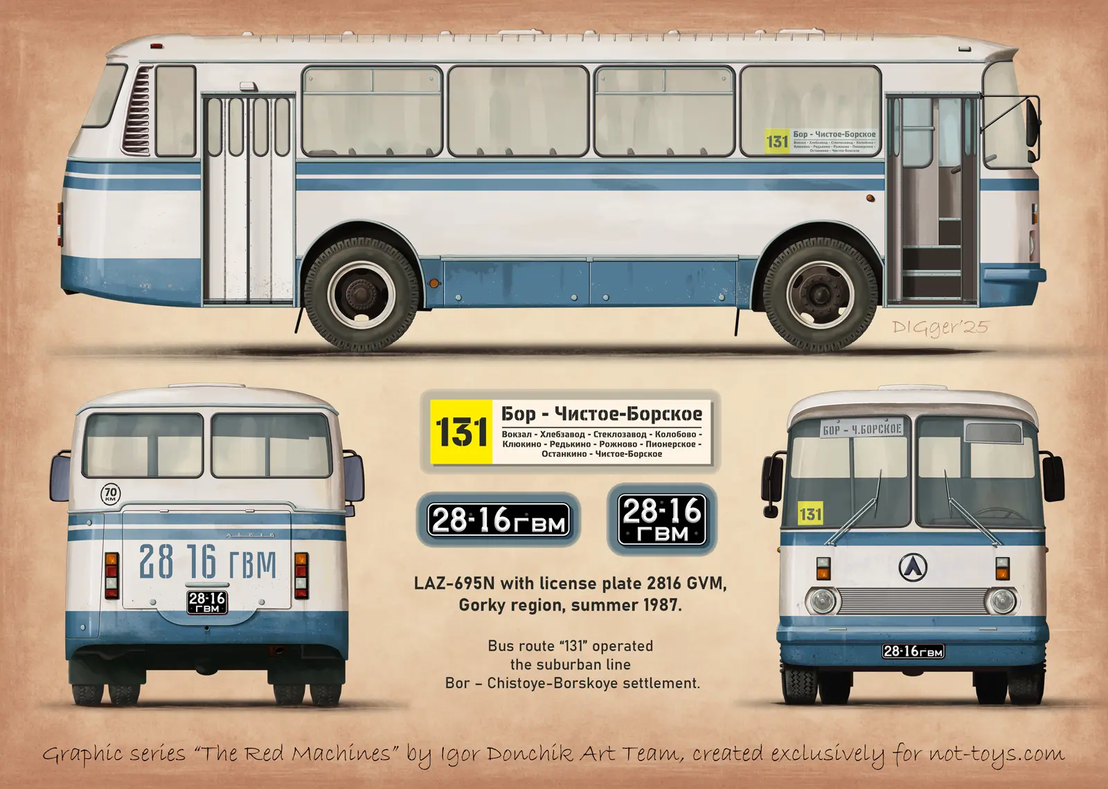 The first publication is dedicated to one of the most recognizable symbols of Soviet public transport — the LAZ-695N. In this article, you will find a detailed overview of the bus, rare archival photographs, and exclusive author’s artwork created especially for this project.