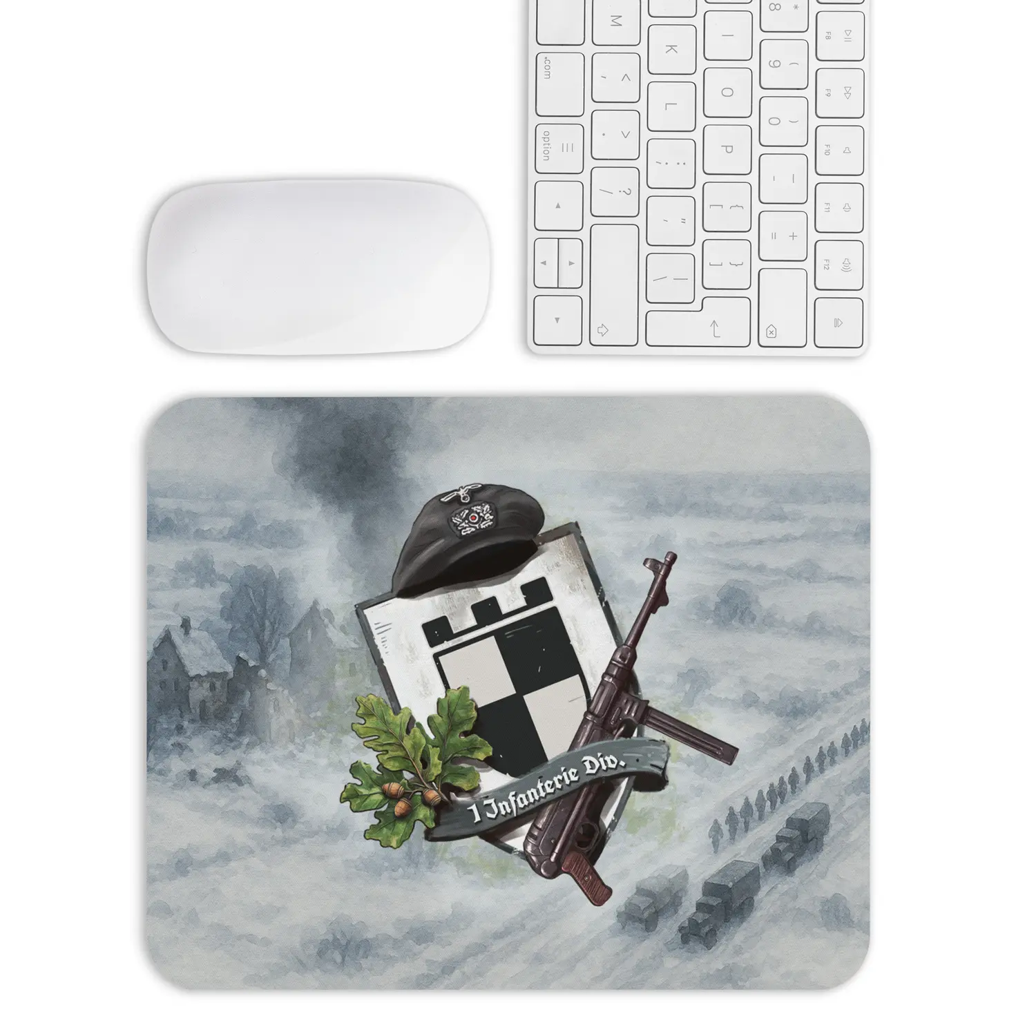 Looking for the perfect gift for a military history enthusiast, collector, or gamer? This premium-quality mouse pad features the emblem of the 1. Infanterie-Division (Wehrmacht) — one of the most historically significant German infantry divisions of World War II. The design is inspired by Igor Donchik’s distinctive artistic approach and the acclaimed Military Unit Insignia book series, blending authenticity, visual impact, and everyday practicality.
