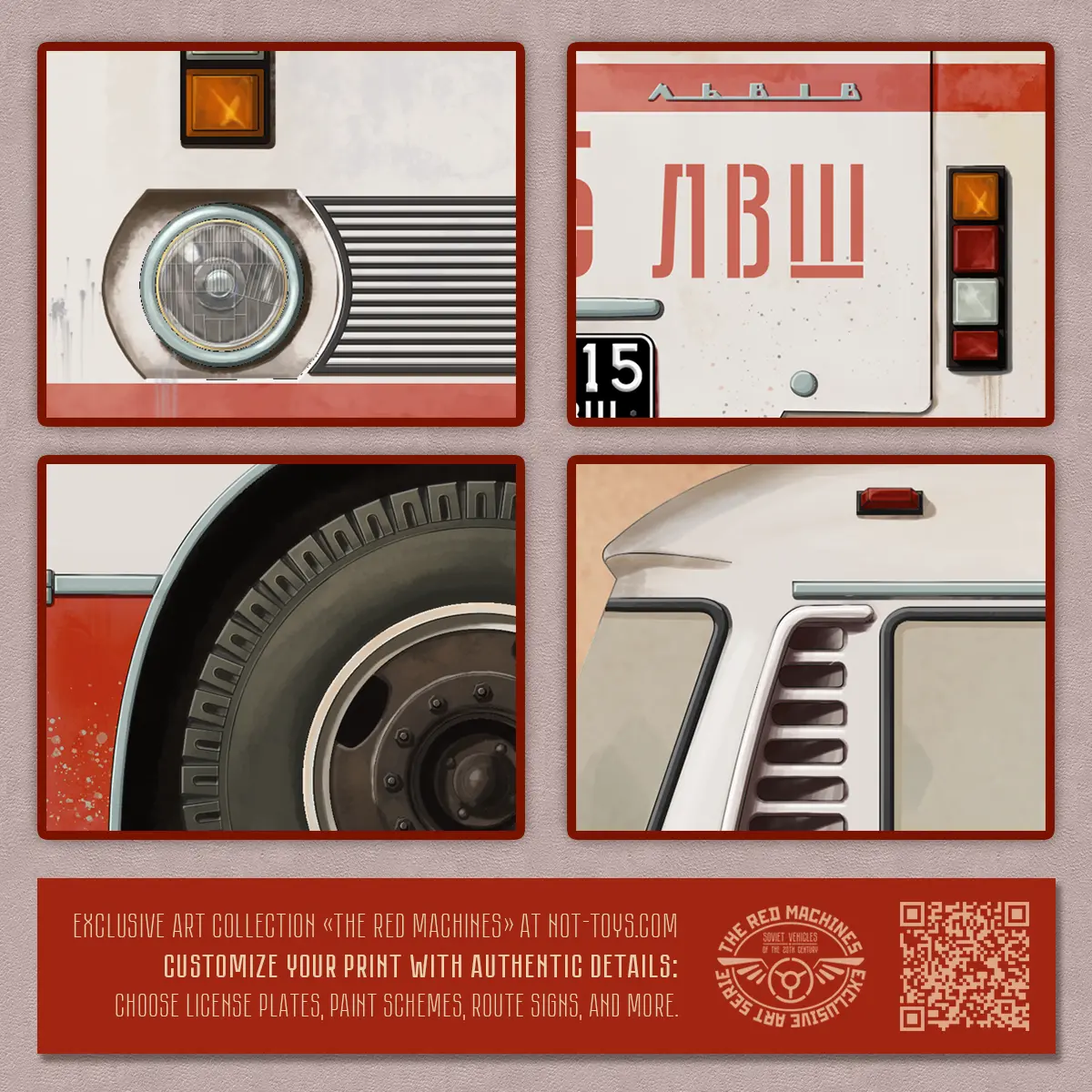 Bring a piece of Soviet history into your home with this exclusive LAZ-695 poster. It is part of the “The Red Machines” art series. This museum-quality print highlights the legendary Soviet bus with authentic detail and charm. The LAZ-695 poster is a tribute to Soviet design and also a collectible artwork for history lovers.